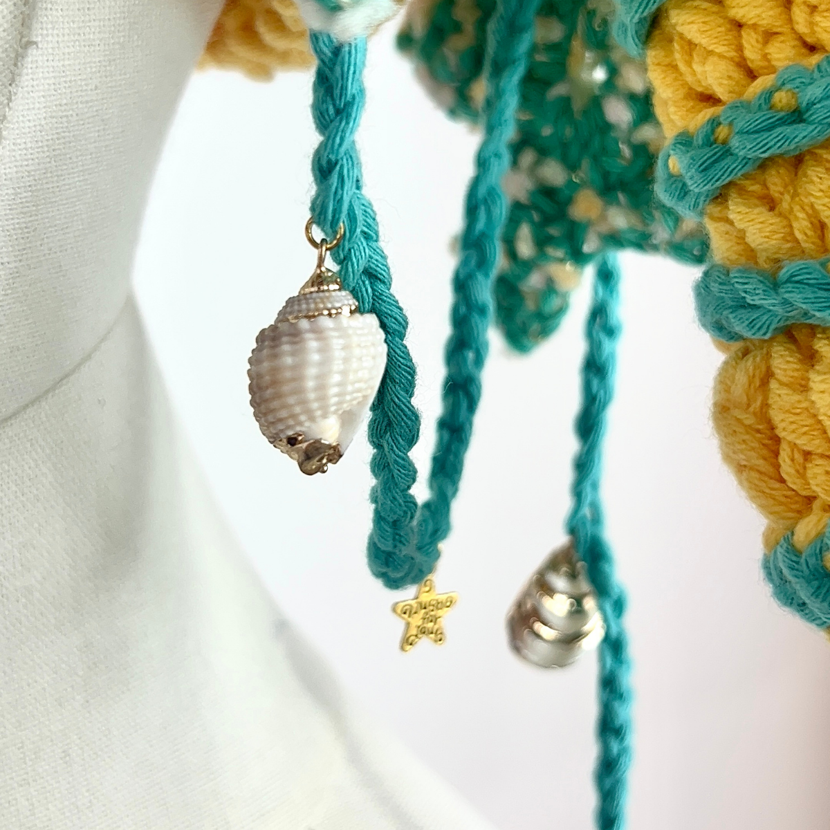 Cappello 100% cotone – Acciaio placcato – Ciondoli di acciaio smaltato – Conchiglie